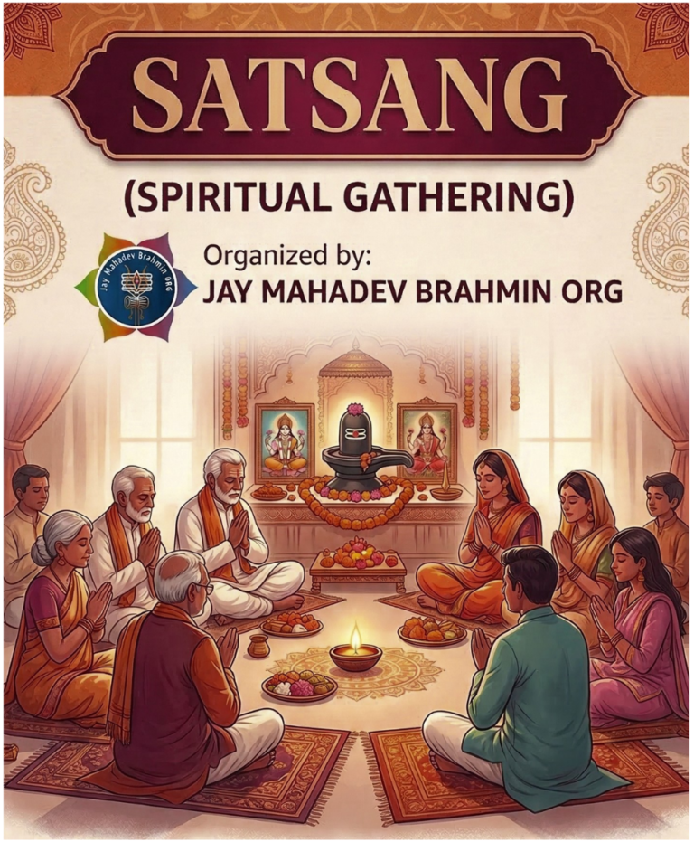 The Jay Mahadev Brahmin Organization warmly invites you and your family to SATSANG a sacred community gathering. In the bustle of our daily lives, this is an invitation to step into a space of stillness, collective wisdom, and spiritual rejuvenation.